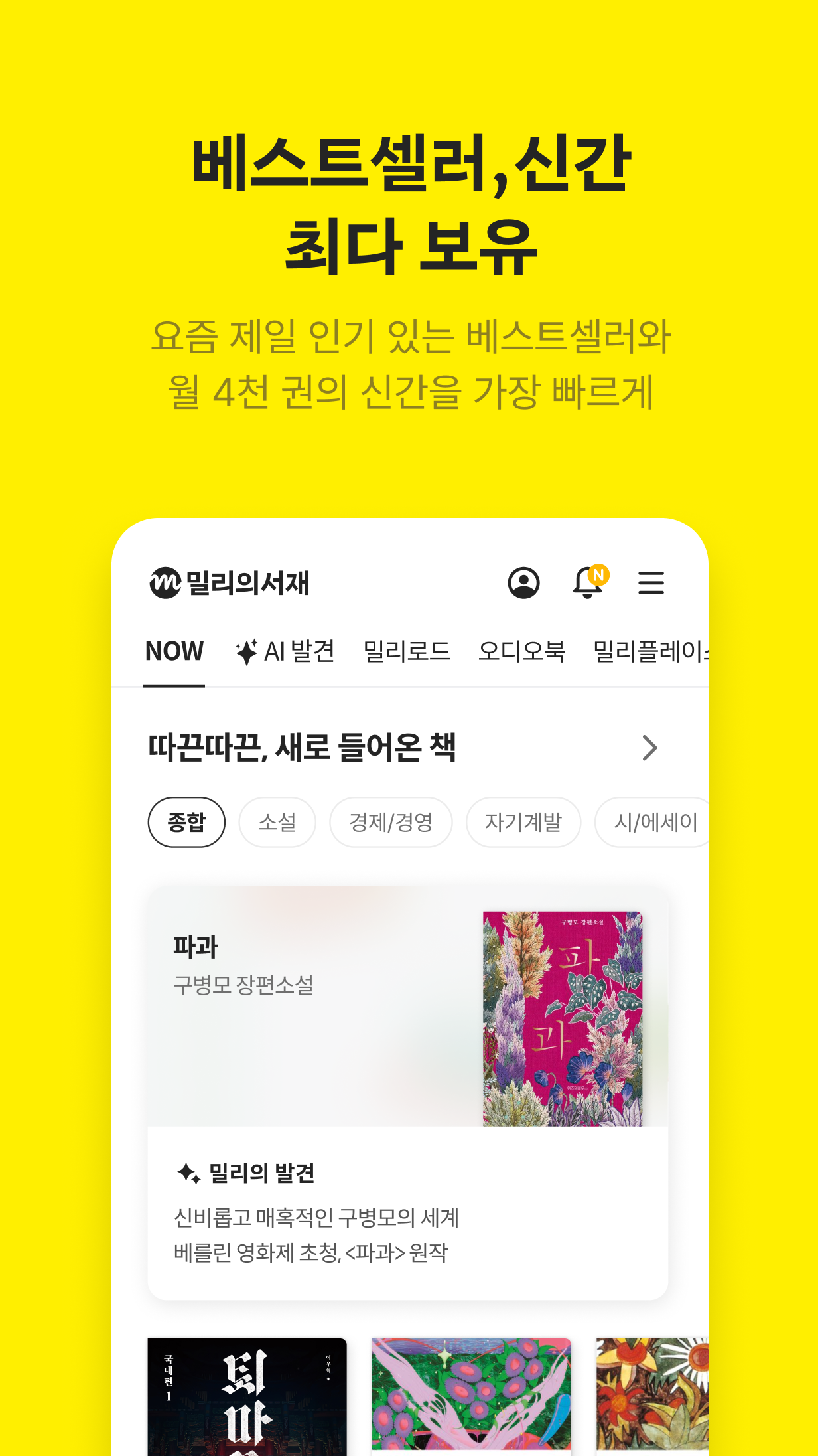 구글 플레이스토어와 애플 앱스토어에서 ‘밀리의 서재’를 검색해 무료로 설치할 수 있습니다.